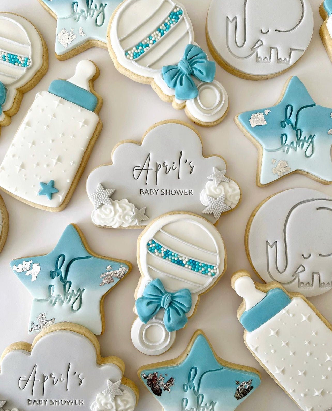 Includes 12 standard sized cookies (approx. 7 cm), featuring up to 2 designs and 2 colours, with 1 text personalisation. These designs are simple and elegant, either embossed or raised on a solid background.