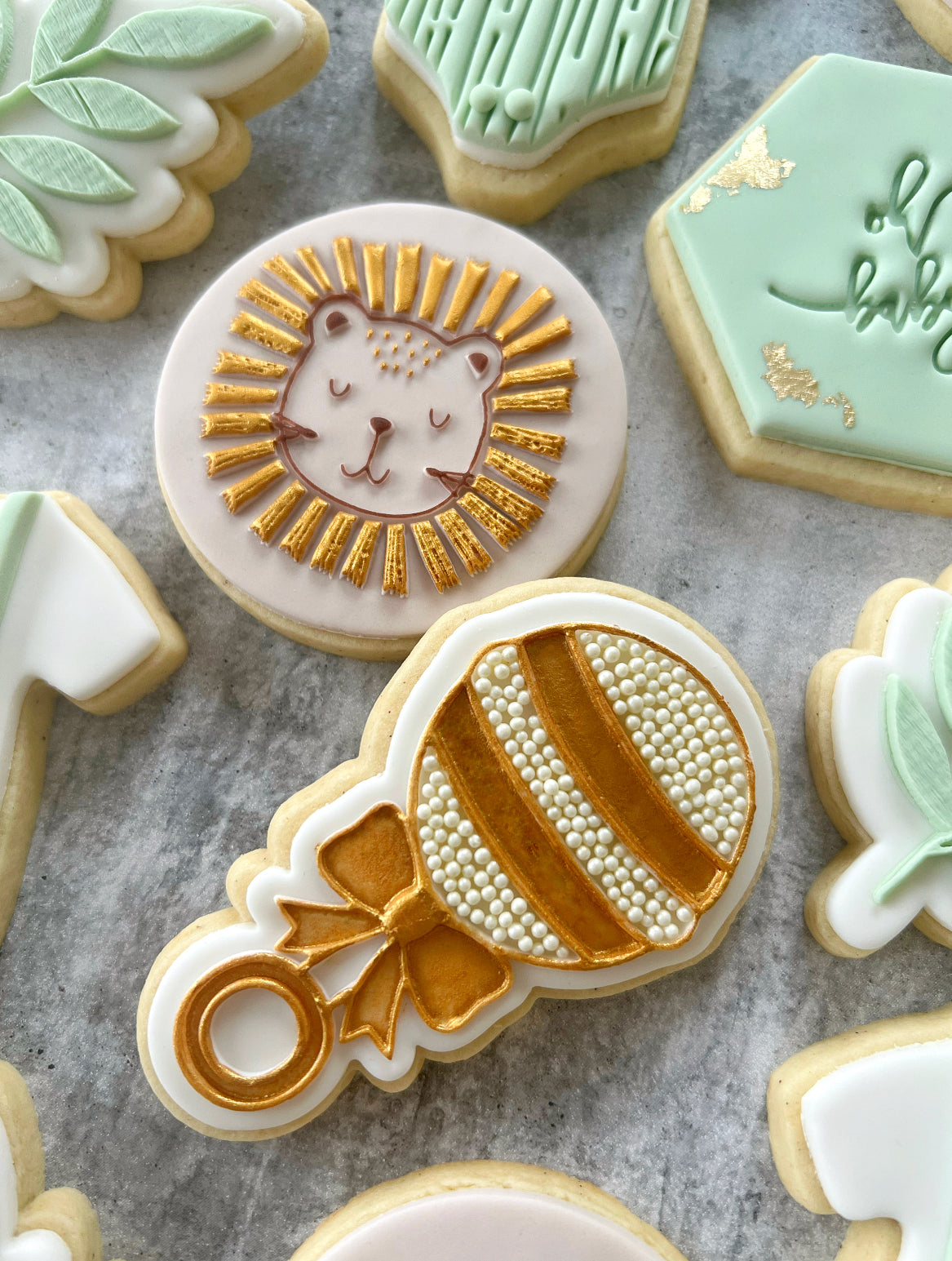 Includes 12 standard sized cookies, with up to 6 designs and 6 colours. This set features detailed work such as hand painted elements, handmade decorations and gold leaf – perfect for something extra special.